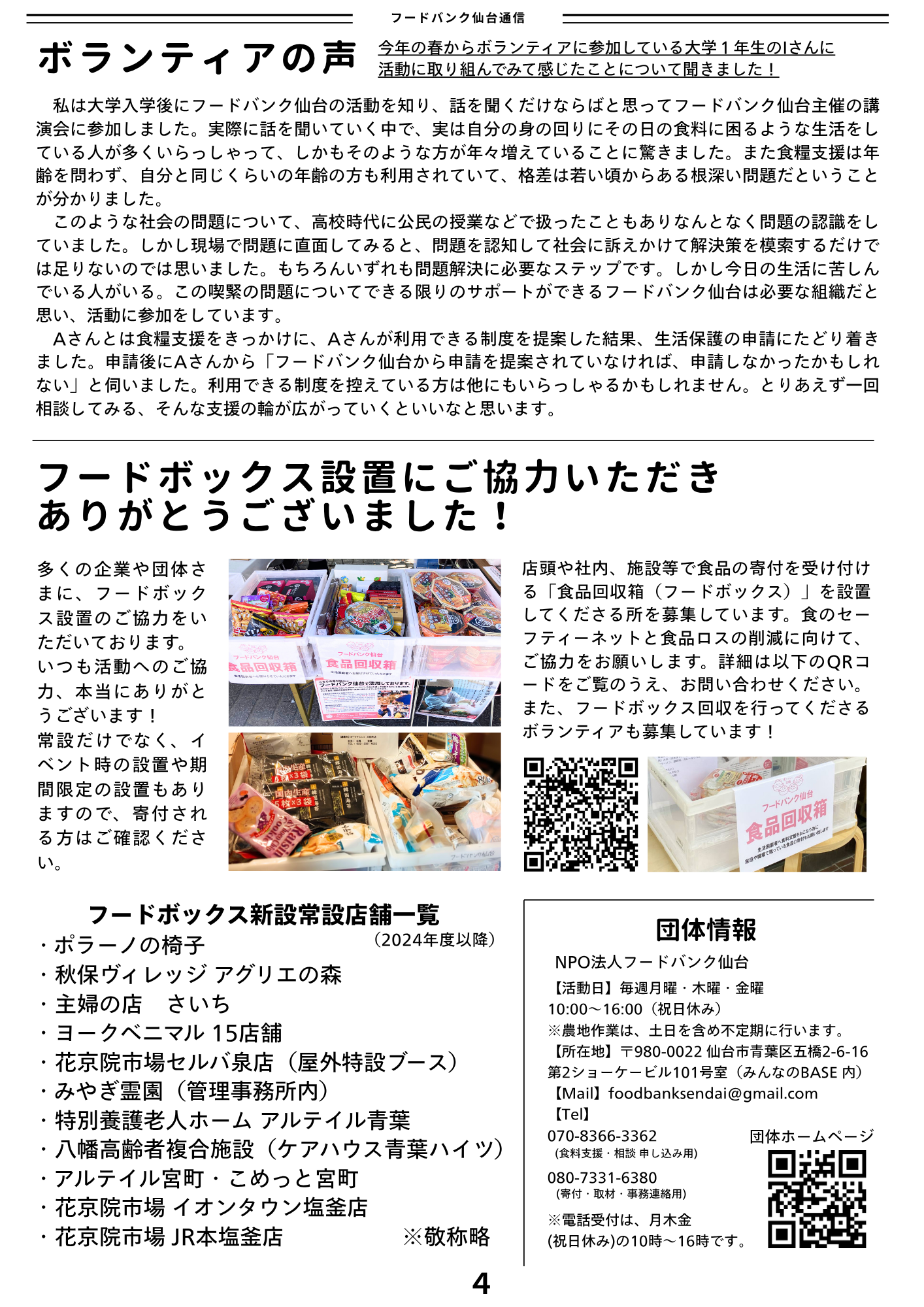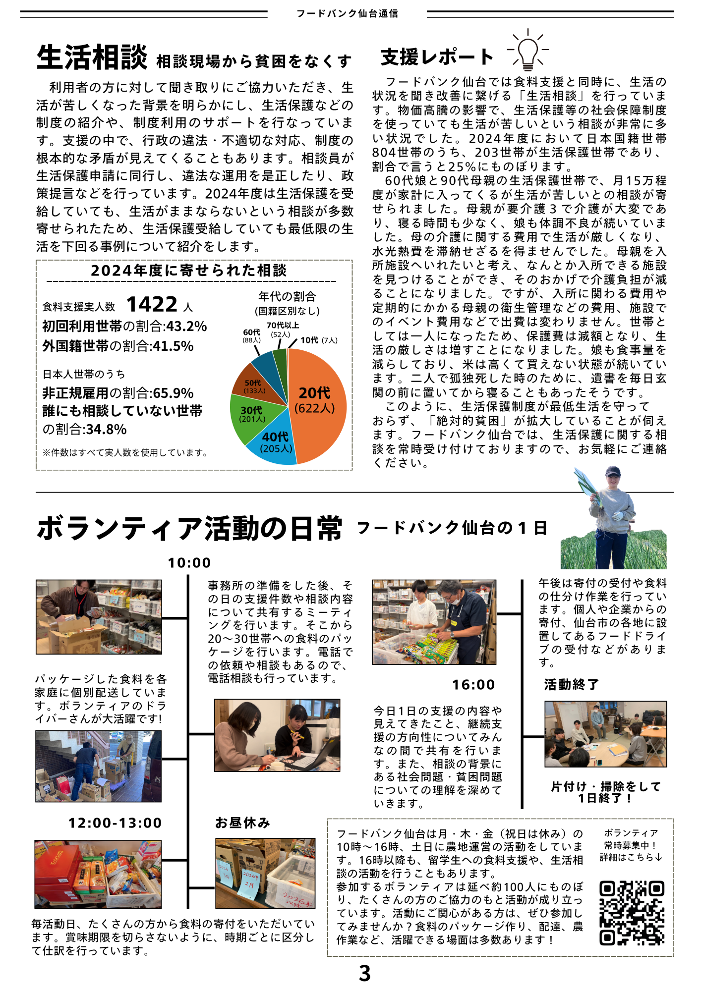 メディア掲載情報や、支援現場からの報告、農地の報告など、フードバンク仙台の活動をより知ることができる内容になっております。ぜひご覧ください!